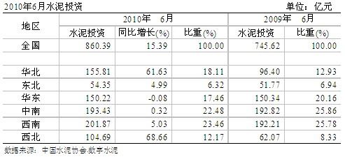 2010年1~6月份,水泥投資額繼續(xù)增加,達(dá)860.39億元,但增速繼續(xù)放緩,為15.39%,西南水泥投資額雖已以201.87億元排在首位,但增速仍維持在5.03%的低位運(yùn)行。地區(qū)中,四川投資額雖位居首位,但繼續(xù)保持負(fù)增長狀態(tài),而投資額排名第二的河北則以104.9%的增速保持了增長態(tài)勢。